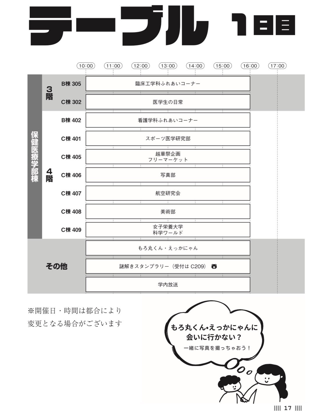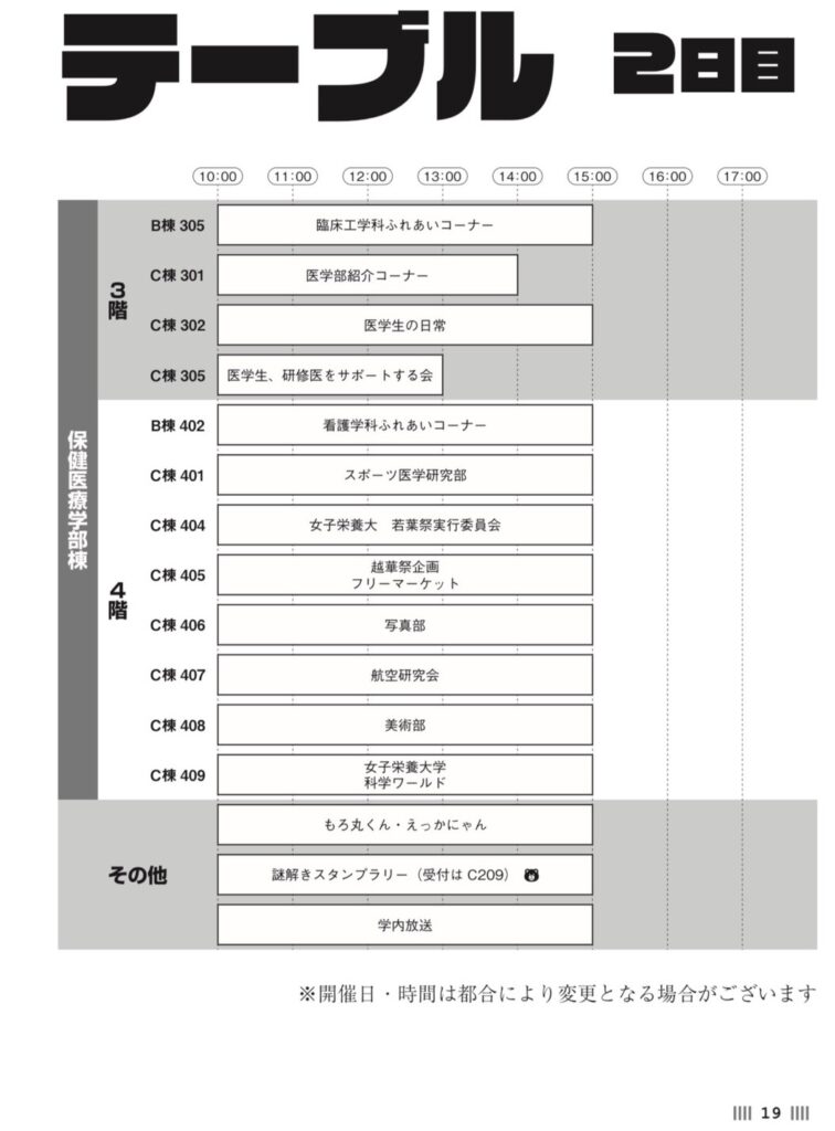 2025年10月11日(土)、12日(日)のスケジュールです。